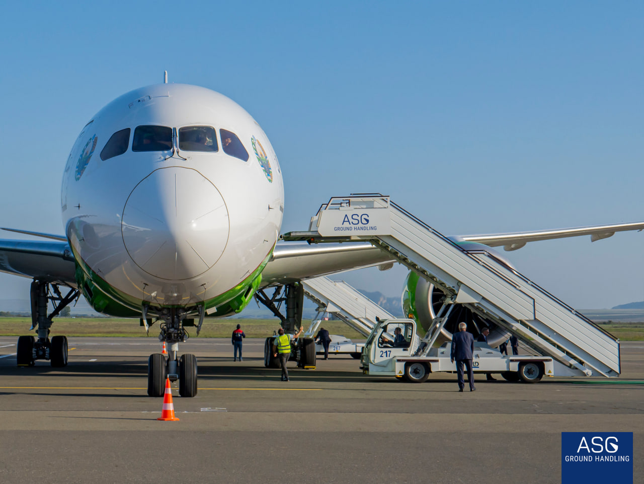 The companies successfully received and positioned the state aircraft of Azerbaijan, Türkiye, Kazakhstan, Turkmenistan, Uzbekistan, Kyrgyzstan, and Hungary at designated parking stands, provided boarding ramps, and ensured baggage unloading and loading. Additionally, ASG Ground Handling supported the motorcades welcoming high-level guests by ensuring their safe movement across the apron using special vehicles.